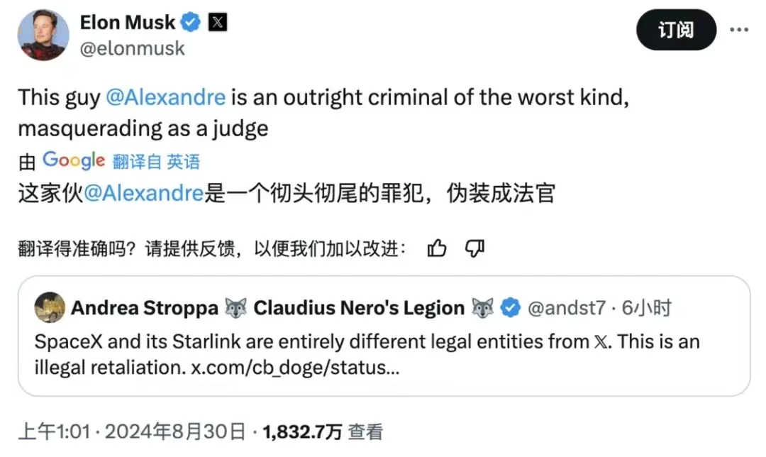 马斯克声称巴西的政府正试图阻止人们获取真相,并指责德莫赖斯法官的命令是非法的。他还表示将在未来几天内公布德莫赖斯法官的所有非法要求及相关法庭文件,以确保透明度。