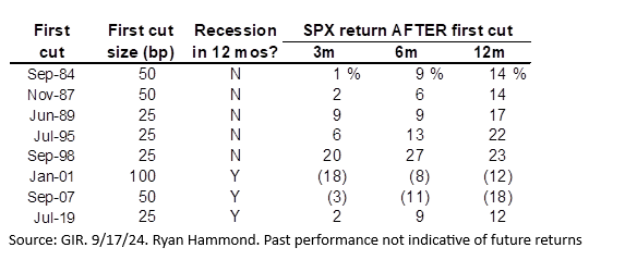 标准普尔 500 指数在过去降息后的表现