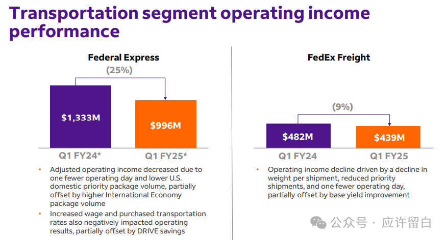 需求疲软:包裹交付需求减弱,尤其是在优先运输方面的订单减少。这导致了货运量和每个包裹的重量下降,从而影响了整体运营结果。