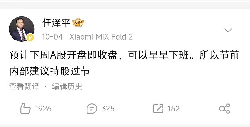 前恒大经济学家任泽平所谓的「开盘即收盘」已经更新为「千金难买牛回头,只能帮到这了 」,有在鼓吹信心了。