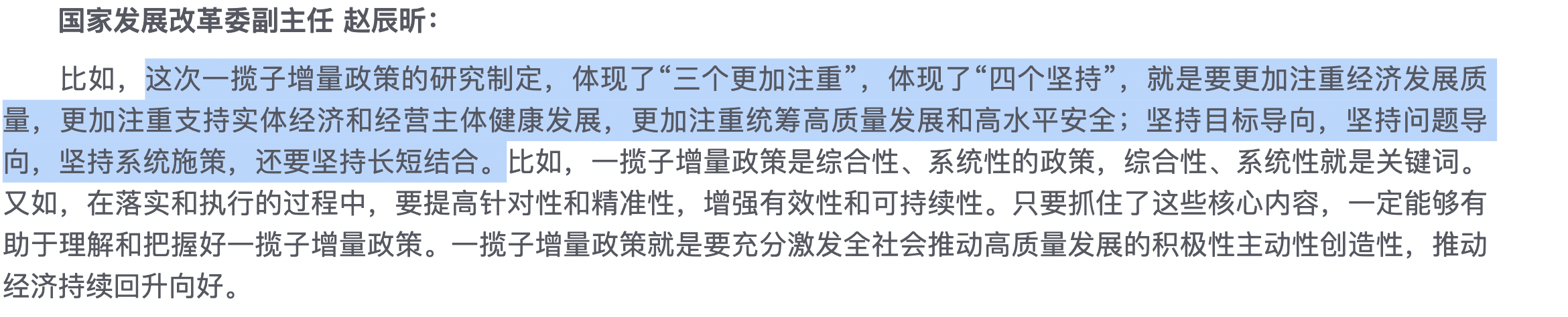 从发改委的新闻发布会,我们没有听到任何有关10万亿,或者万亿级别的财政刺激,如果真的要等财政增量要等10月份的全国人大常委会的会议决定。