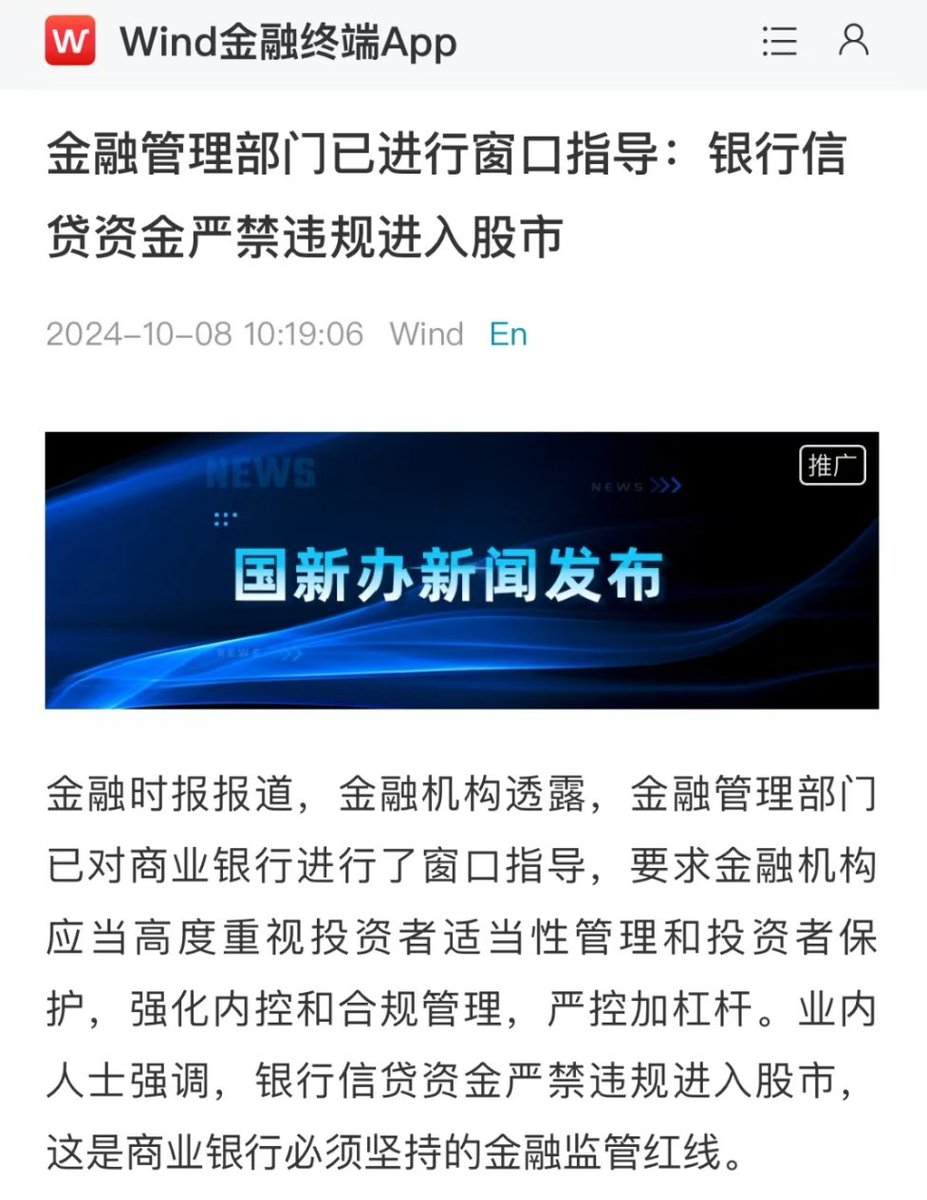 金融管理部门已对商业银行进行了窗口指导,严控加杠杆,严禁信贷资金违规流入股市。