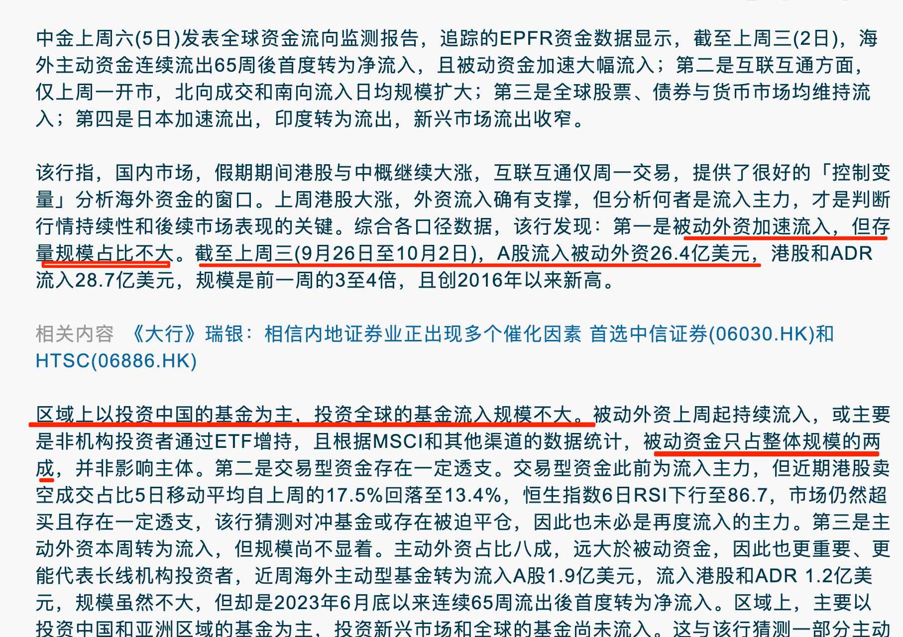十一节前,不少媒体鼓吹外资买爆中国股市,但是,只有节前一周有海外主动型的外资是转入的,而前面65周都是转出的。而且,不是媒体吹嘘的所谓美国资金流到了亚洲进入了A股。因为他们的头寸小,资金交易的经理需要跑赢基准,所以流入A股增持了。或者说,是不是因为对冲做空而回补。