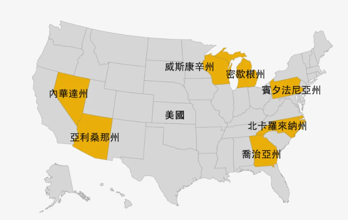 距离11月5日美国大选不到二周时间,2024年美国总统选情紧绷,很可能与上2届一样,靠少数几个「摇摆州」,具体而言,以下七大关键摇摆州的得票情况将直接决定大选的结果。
