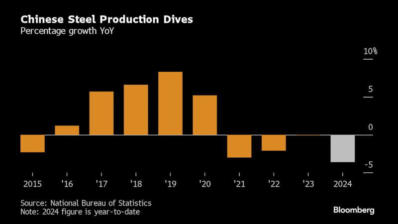 图:亏损加剧迫使中国钢铁长减产 来源:Bloomberg