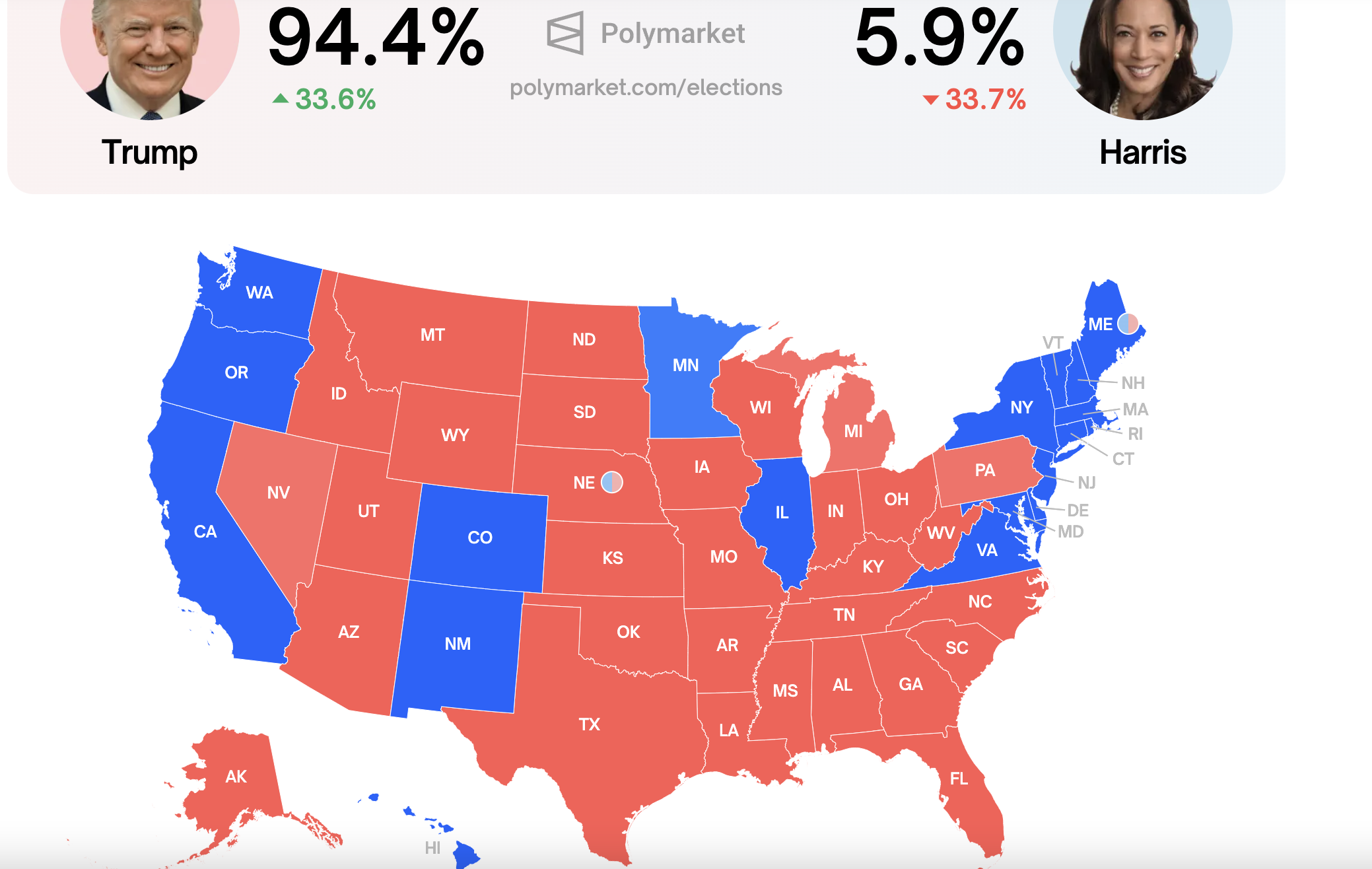 上图是Polymarket的预测,Polymarket很多人认为这只是赌场。