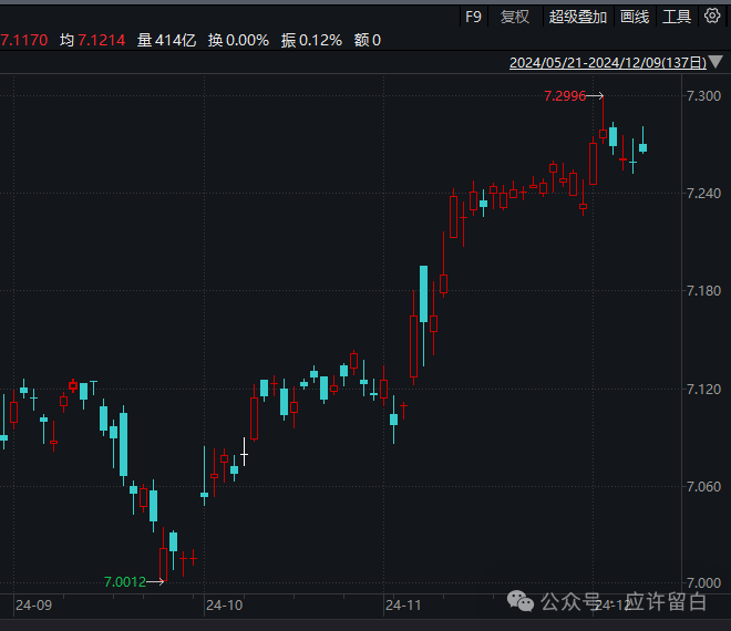 美联储进入宽松周期,周五的非农又是略低于预期,本月降息25个基点是大概率的,而今天政治局会议也修改了措辞,把货币政策改为适度宽松。虽然汇率已在7.3左右,但为了刺激经济增长,放弃汇率也是无奈之局。而随着明年美联储降息的不断落地,汇差势必会降低一些。