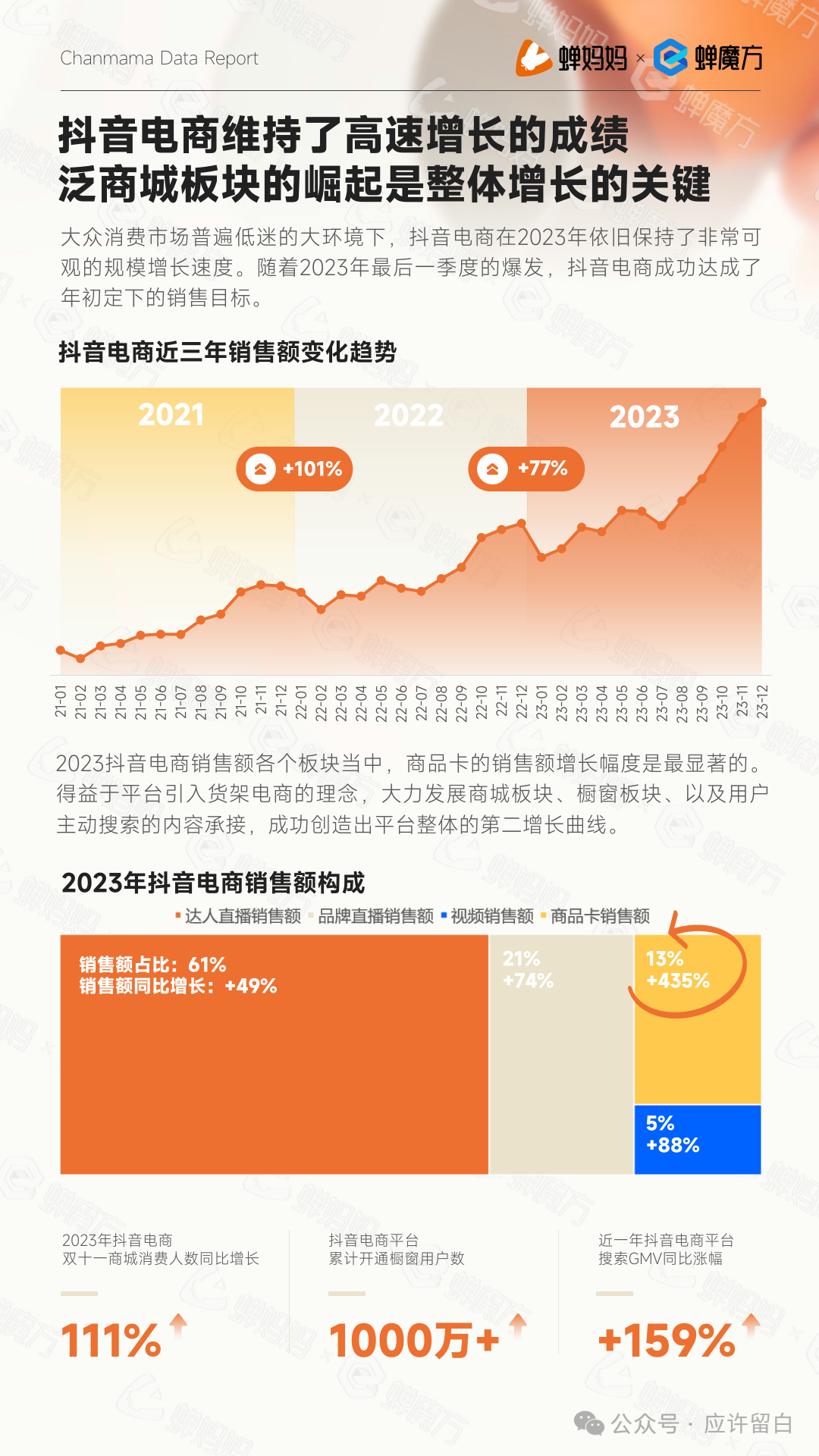 同时,抖音在内容方面的数据逐步下降,带货成为抖音最大的趋势。