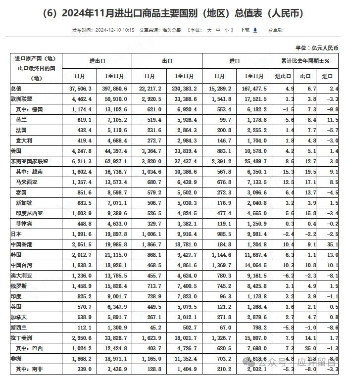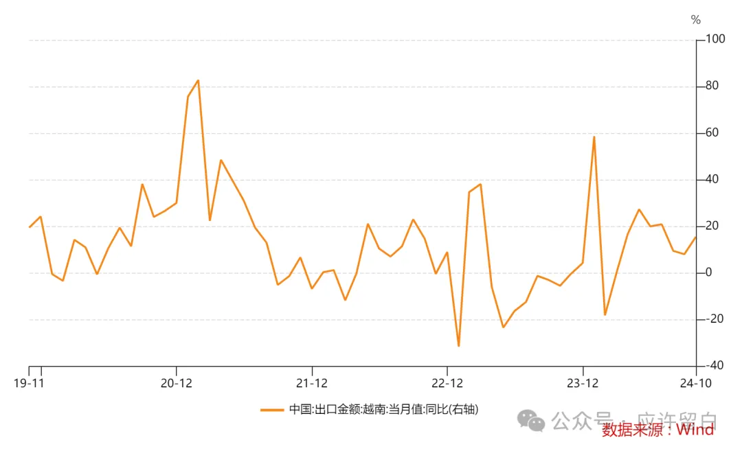 前11个月,东盟为我第一大贸易伙伴,我与东盟贸易总值为6.29万亿元,增长8.6%,占我外贸总值的15.8%。其中,对东盟出口3.74万亿元,增长12.7%;自东盟进口2.55万亿元,增长3%。其中不乏通过东盟出海的转口贸易。其中,对越南和马来的同比增长均是10%以上,越南更是突破15%。
