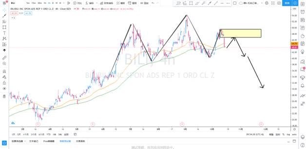 策略解析:哔哩哔哩4小时周期开始出现潜在头肩顶形态,并且隔夜价格强势下跌或将奠定后市形成趋势性的下跌走势。因此,现在开始关注价格能否有回抽供给区46.80-49.50的机会,可择机逢高做空哔哩哔哩,依次下看目标40.60、30.30一线。