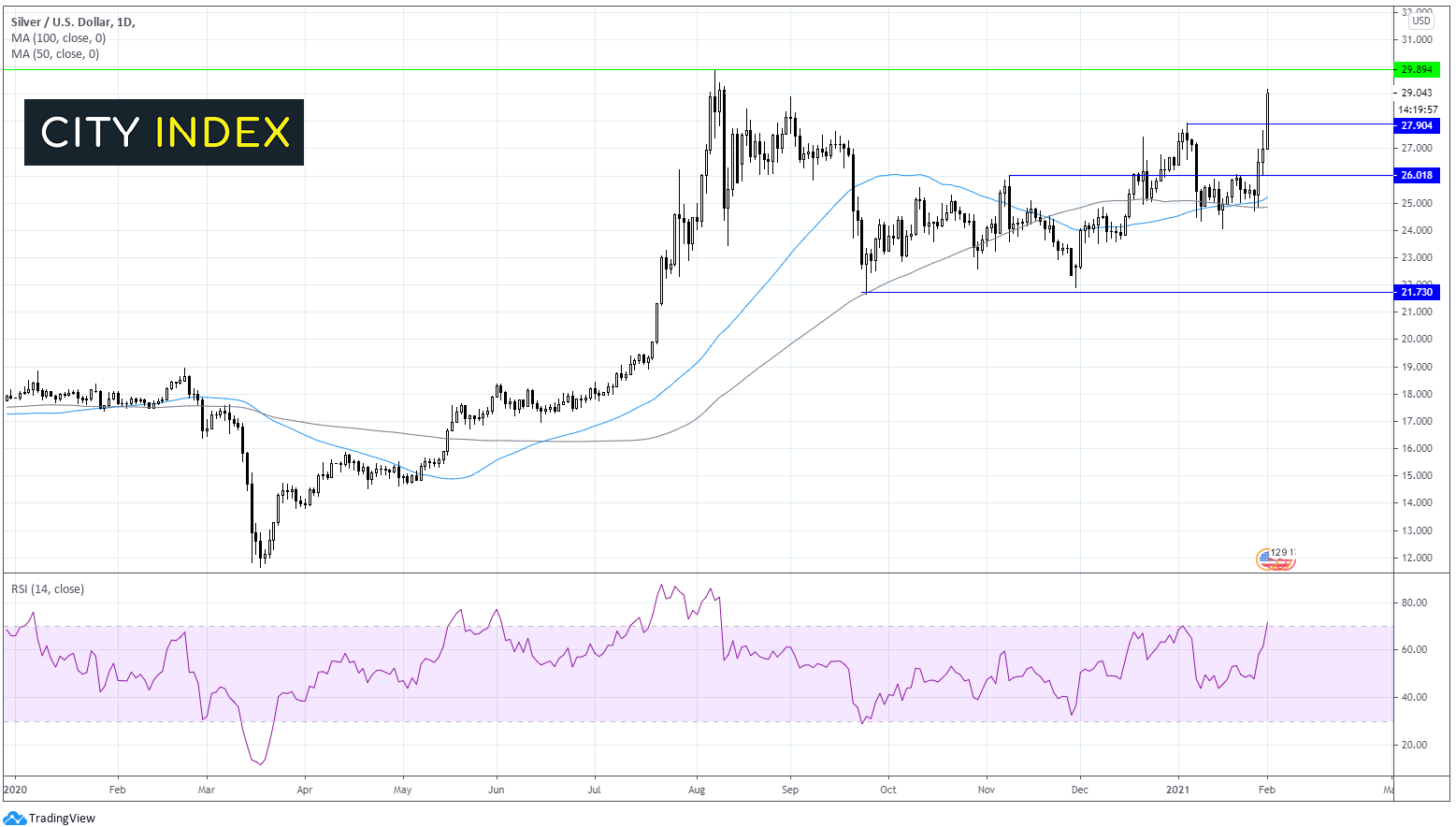 银价会毫无逻辑地继续上涨吗?如果上周股票逼空行情给我们留下了什么启示,那么目前的答案似乎是肯定的。但要注意的是,银价的暴跌速度可能会像其上涨一般迅猛。