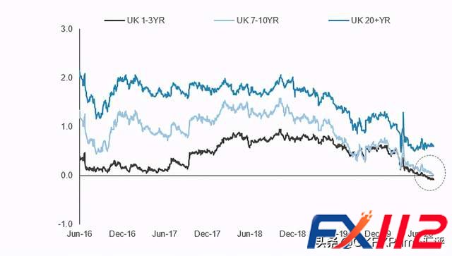作为英国央行行长的安德鲁·贝利的发言就颇耐人寻味。近期他表示降息到0%一下的可能性不会太快。这句话中,贝利没有否认负利率的可能性。在近期出席苏格兰商会的讨论中他还表示英国央行货币政策委员会(MPC)成员正在就负利率的优劣进行辩论。