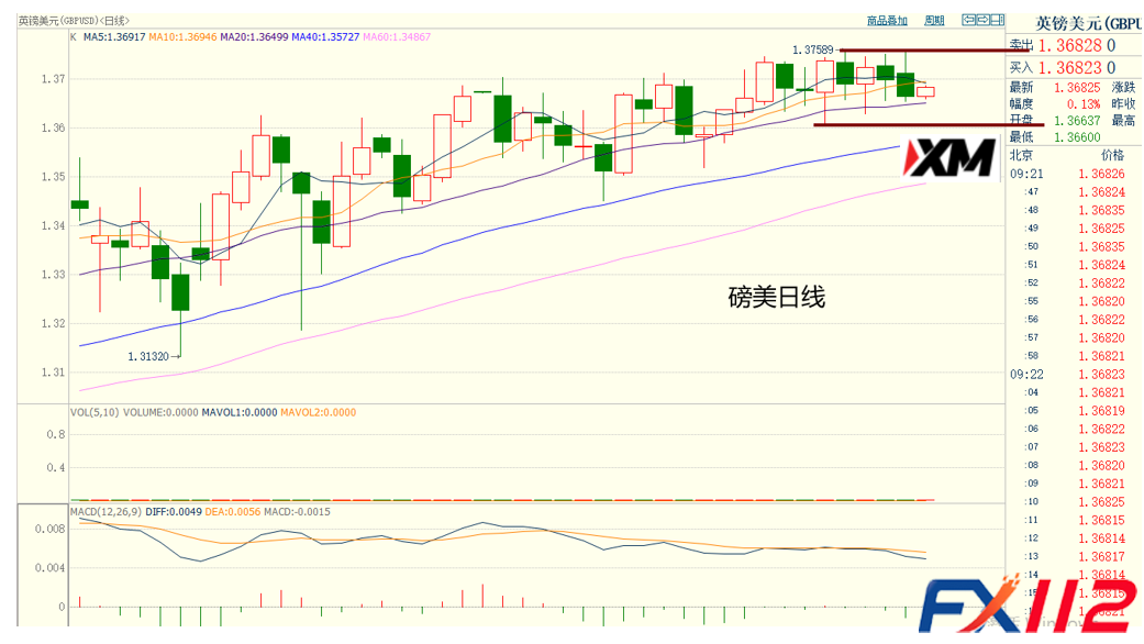 支撑位:1.3650-1.3625/1.3620-1.3590-1.3570