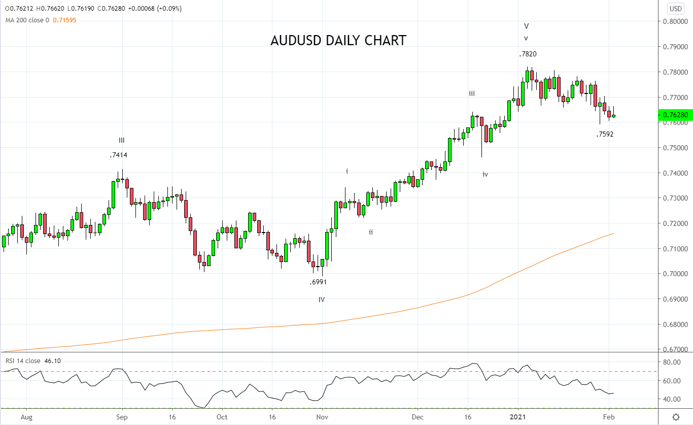 如果澳元/美元仍受制于短线阻力位0.7700/10区域,预期汇价将面临更深修正,下破上周低点0.7592,然后测试中期支撑位0.7500/0.7400区域。