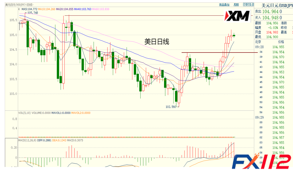 美日昨日继续上涨创新高,但上影线越来越长,证明上方的压制越来越大,短期趋势继续偏多,但日内要谨防出现冲高回落的情况。
