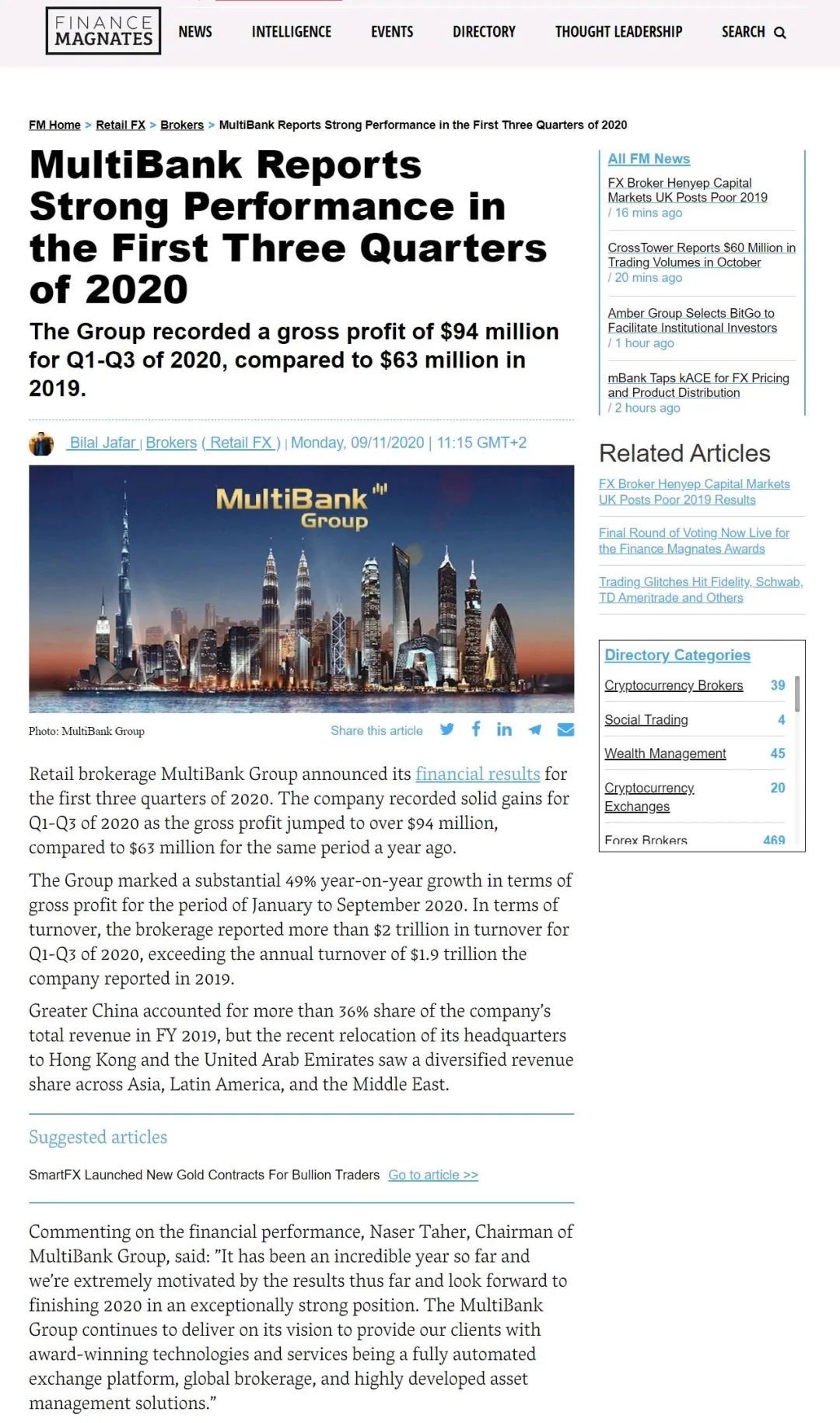 凭借顶级的流动性,先进的交易技术及一流的客户服务,MultiBank大通金融集团为全球90多个国家逾28万零售及机构客户提供先进的交易平台和最低点差报价,交易产品包括:外汇、贵金属、股票和差价合约等。