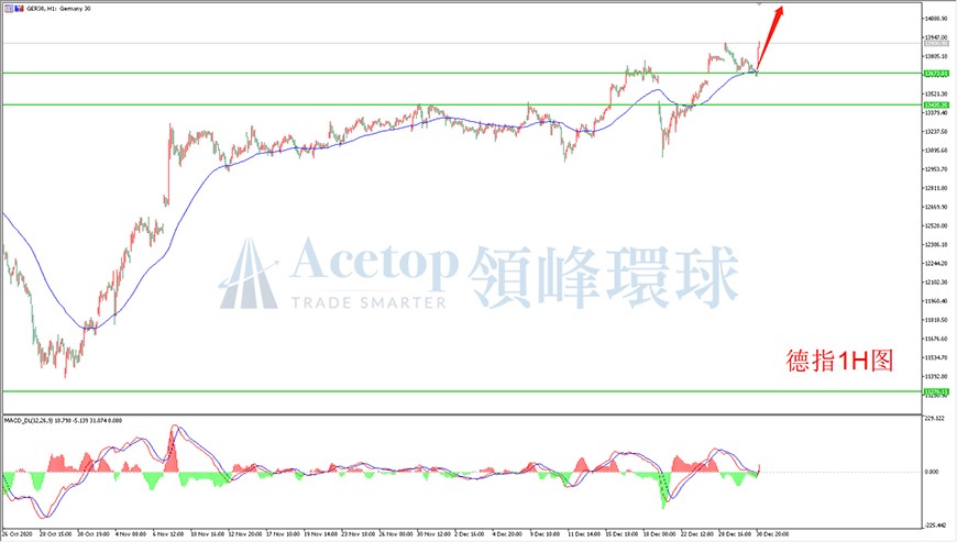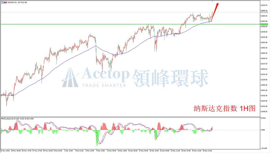 今日欧盘时段纳指再度刷新历史新高,后续美国政府大概率实施新的刺激计划,且全球疫苗也在不断取得积极进展,经济复苏前景不断看好,这将支撑美国三大股指长期走强。