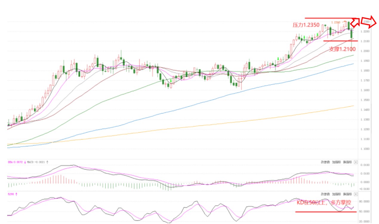 支撑:1. 2100,阻力:1.2350
