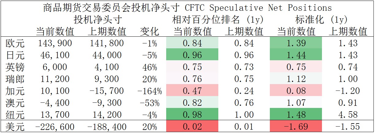 CFTC资金流数据显示,美元空头处于极值,因此,预计短期随着资金流入并支持其回涨,另外,日元多头也仍处于极值。