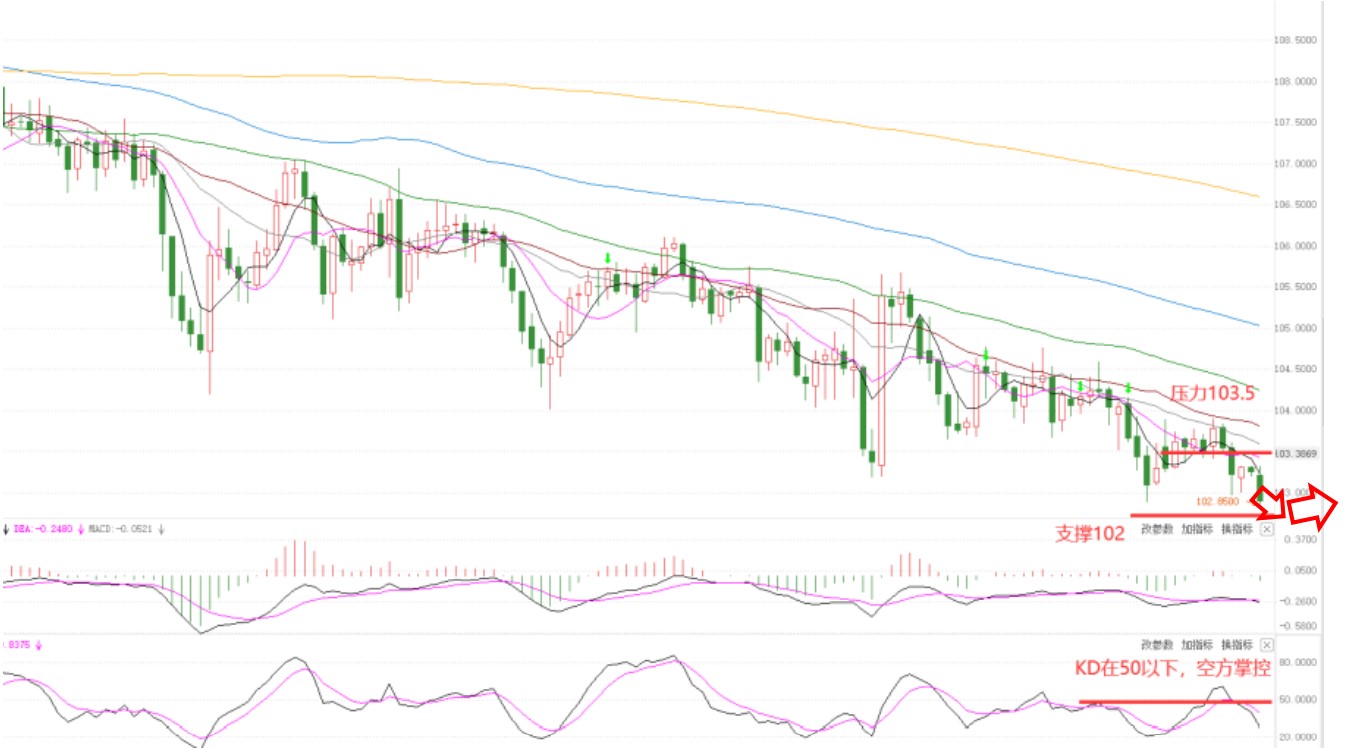 支撑:102 ,压力103.5
