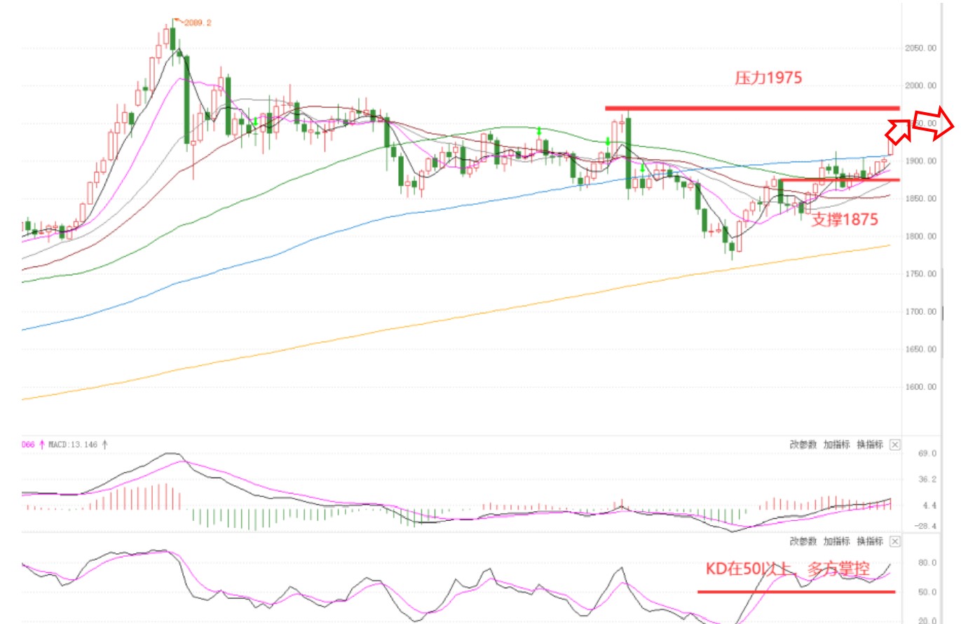 技术面,均线呈现多头态势,下方可关注1日均线支撑。KD在50以上,为多方掌控。