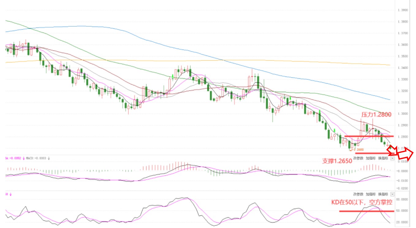 支撑1.2650,压力1.2800