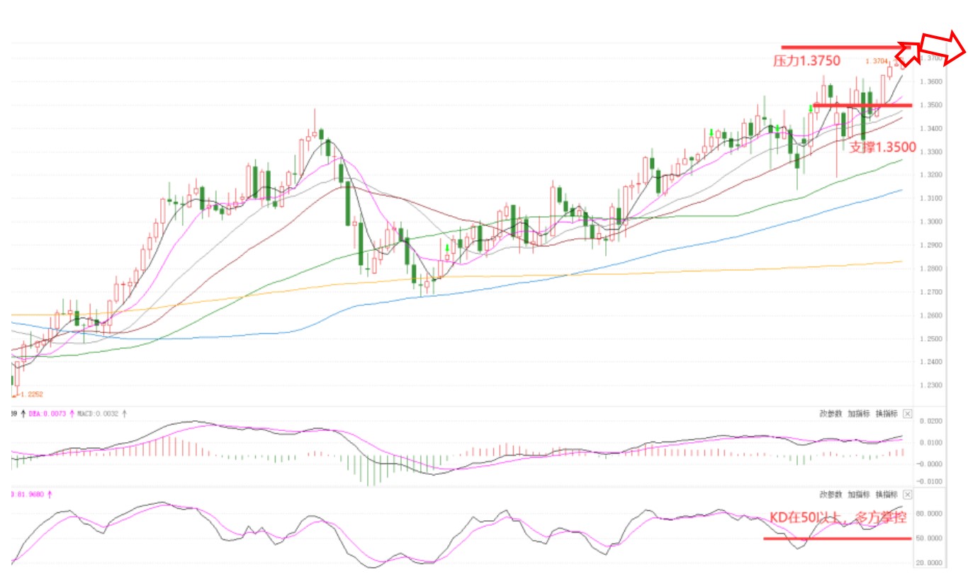 支撑:1.3500,阻力:1.3750