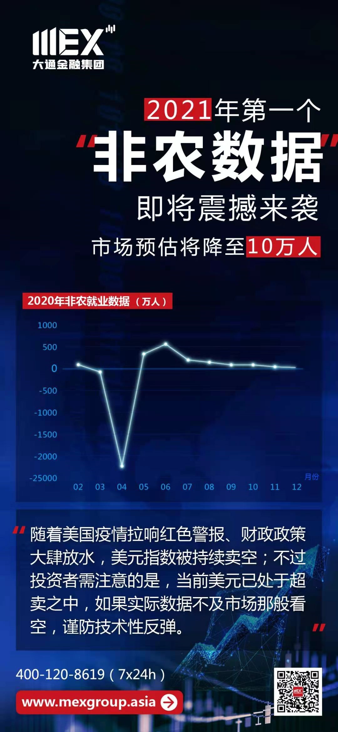 MEXGroup:财经头条 | 2021年第一个“非农数据”即将震撼来袭,市场预估将降至10万人