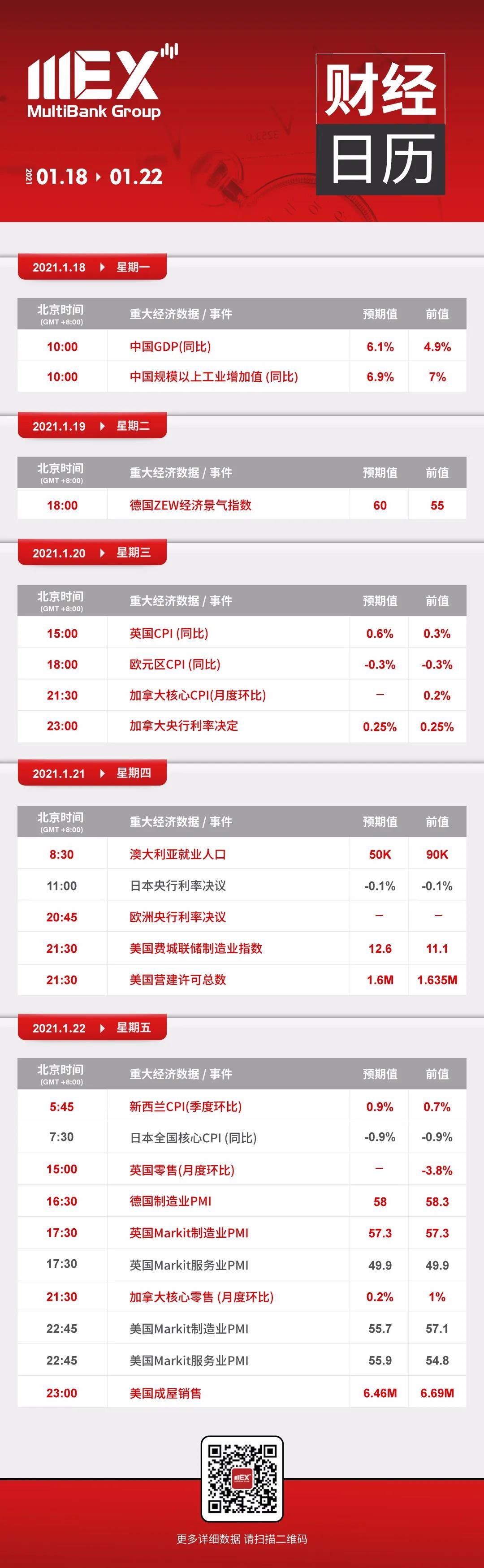 MEXGroup:财经日历 | 前瞻市场,运筹帷幄01.18--01.22