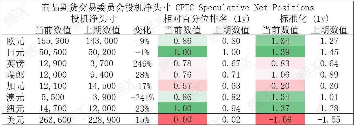 CFTC资金流数据显示,美元空头处于极值,因此,预计短期随着资金流入并支持其回涨,另外,日元多头也仍处于极值。