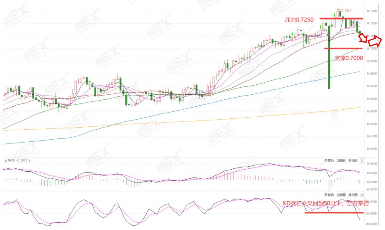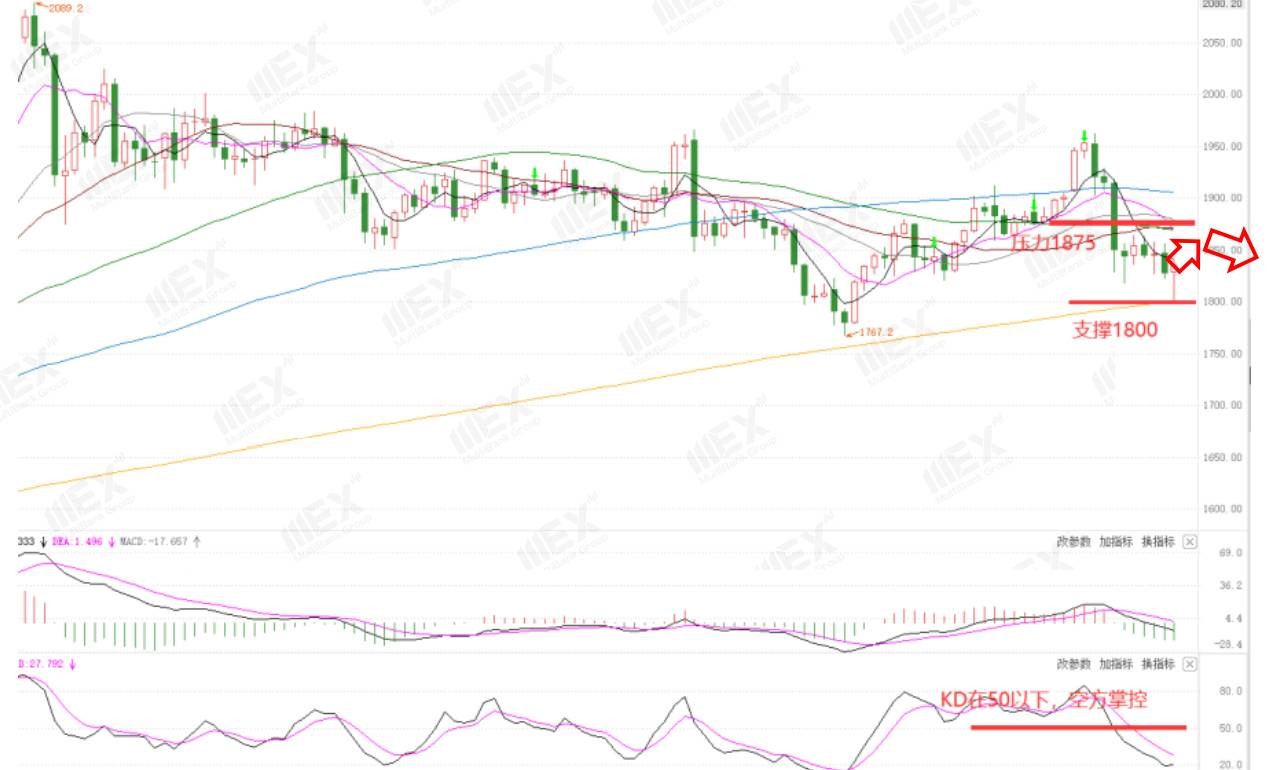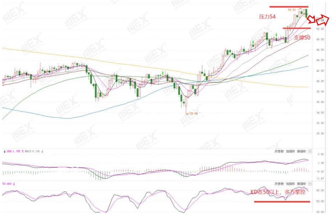 技术面, 按照均线扣抵来看,20日均线将逐渐扣高,因此20日均线并没有什么支撑,可关注30日均线支撑。KD死亡交叉回到50以下,为空方掌控。