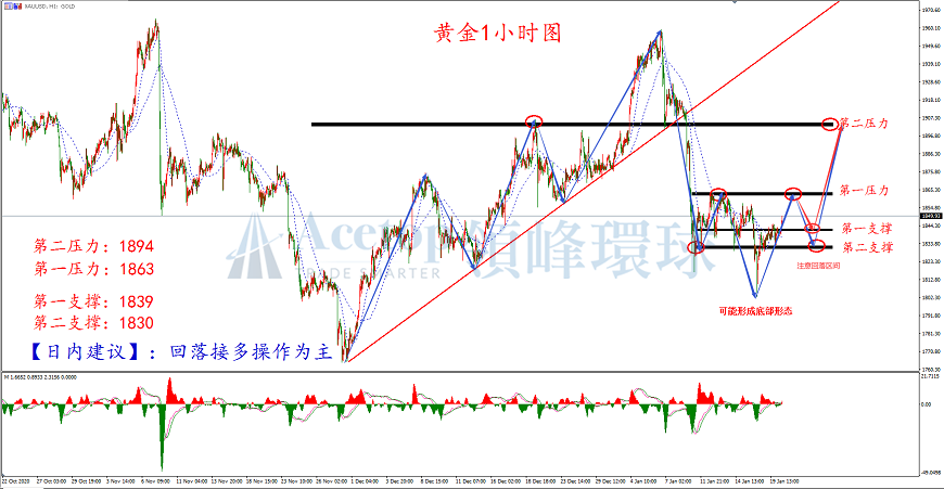 多单:1839附近尝试做多,止损1833,目标1848、1862附近。