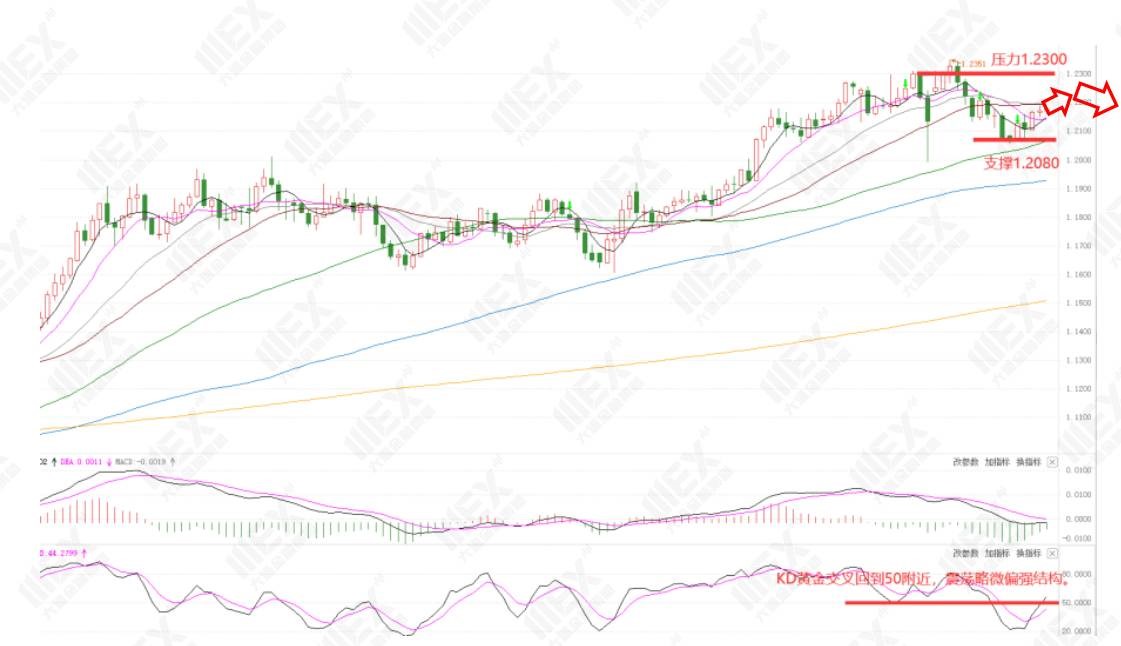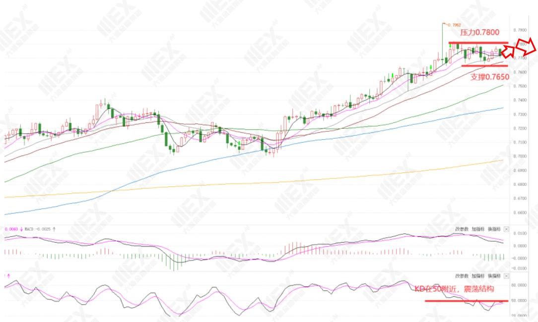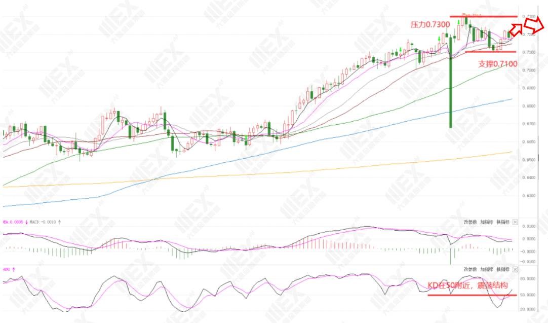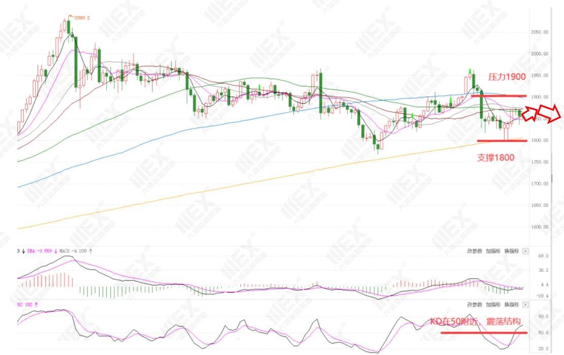技术面,短期均线呈多头排列,下方20日均线均为支撑。KD死亡交叉回到50附近,为震荡结构,空方时间运行到尾声。。