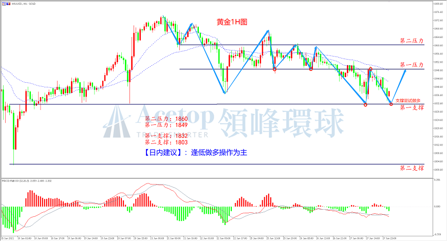 多单:1833.0附近尝试做多,止损1828.0,目标1840.0、1849.0附近。