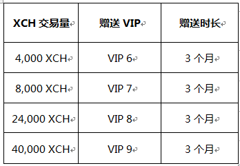 活动期间,API用户交易XCH,交易量大于4,000 XCH,即可按照下列规则申请VIP费率,享受3个月全平台VIP优惠费率。