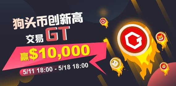 ·2021年5月11日-5月18日,Gate.io GateToken (GT) 创新高,交易GT (狗头) 赢10,000美金及100个硬件钱包