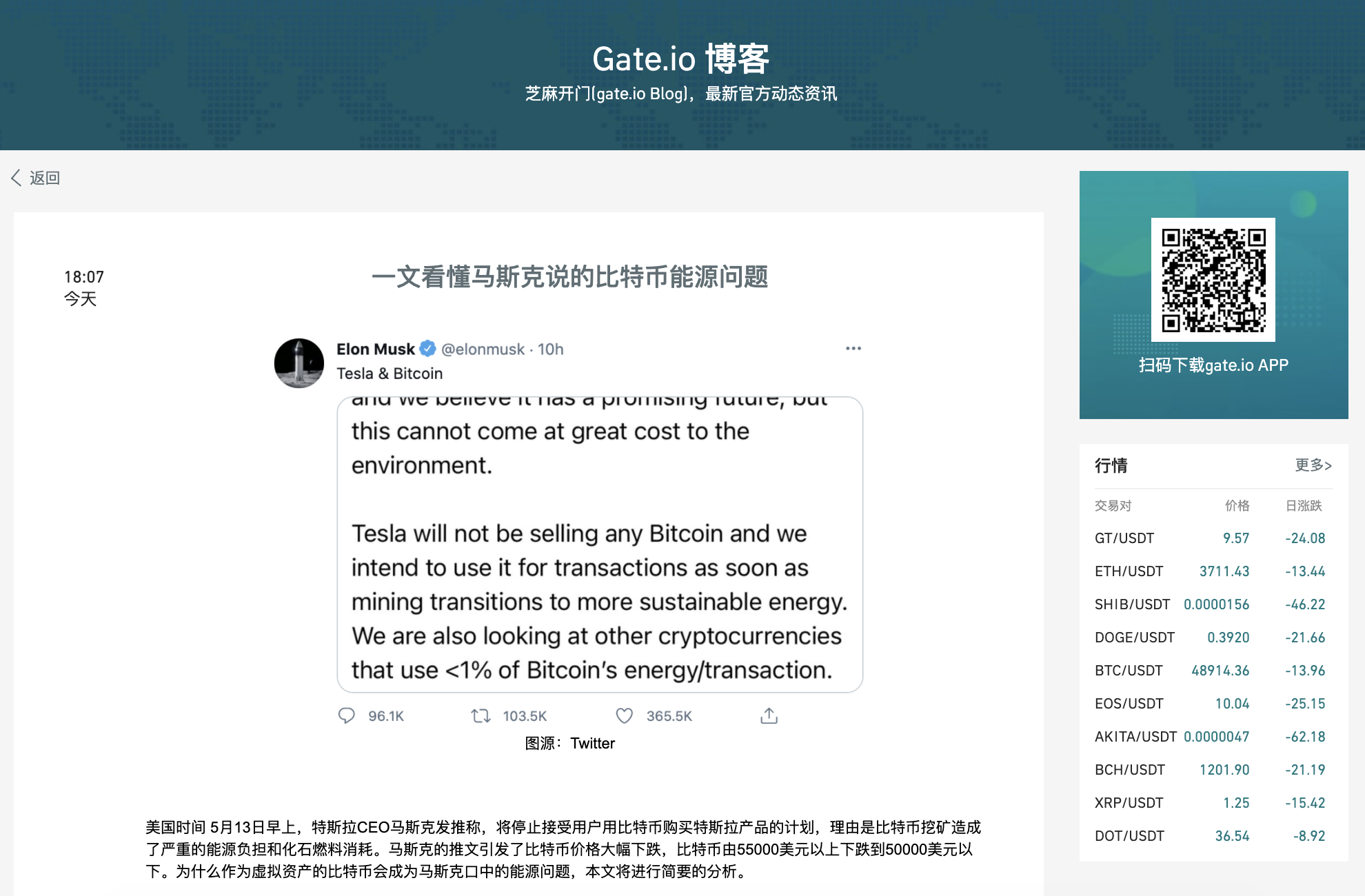 Gate.io博客:一文看懂马斯克说的比特币能源问题