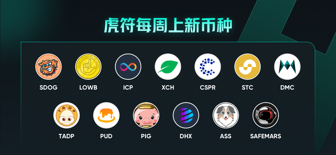 这周我们上线了SDOG、LOWB、ICP、XCH、CSPR、STC、PUD、PIG、DHX、ASS、SAFEMARS、DMC、TADP等项目,并开通相应交易服务。详情点击:https://help.hoo.co/hc/zh-cn/articles/900005942046