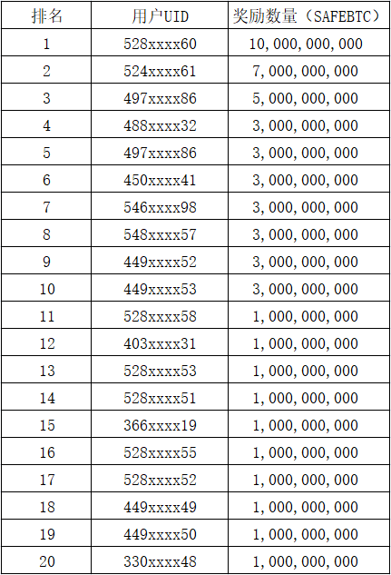 【奖励发放】SAFEBTC交易大赛活动结束及奖励发放的公告