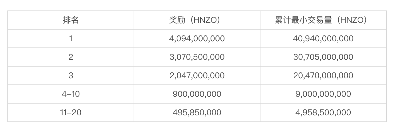 活动1:HNZO交易赛,赢20,470,000,000 HNZO