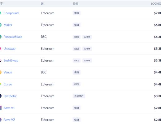 DeFi项目锁定资产前十排名及锁仓量,数据来源:Debank
