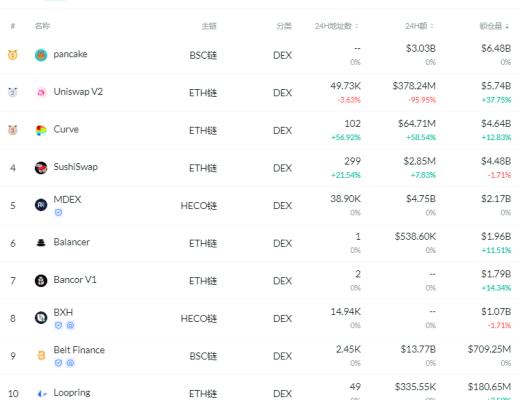 交易量排名前十的DEX 排名来源:DeFibox