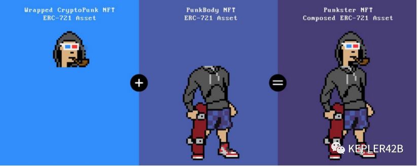 Composing:可以将多个NFT组合在一起,或者将额外的实用程序和价值层添加到现有的NFT上。AlchemyNFT正在使用AutographNFT实现后者,通过提供使用数字签名来签署现有NFT的功能。Punkbodies是通过允许用户将他们的CryptoPunk(一个ERC-721)与一个PunkBody(也是一个ERC-721)结合来创建一个他们可以下载或铸造的Punkster。该实现锁定最初的ERC -721来铸成Punkster NFT,用户可以销毁组成的NFT来解锁原始的NFT。这些组成的NFT继承了它们原始的来源和实用性,同时提供了额外的特性或实用性。