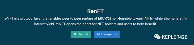 这一模型同样适用于艺术和数字领域等非现实领域。如今,ReNFT正试图通过一个针对NFT租赁的点对点市场来实现这一目标。与加密中的大多数DeFi协议一样,目前这是一个超额抵押的解决方案;借款人可以通过存入与NFT贷款市场价值相等的抵押品以及额外的租金来租用NFT贷款。也就是说,EIP-2615提议在协议级别上进行了改进,它本身支持ERC-2615代币内部的租赁功能,不再需要保证金。