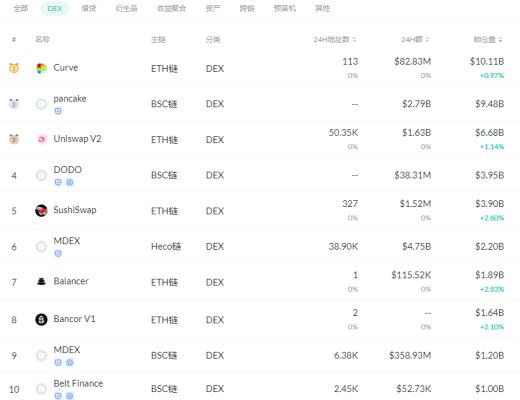 过去24小时去中心化交易所的交易量数据来源:Debank