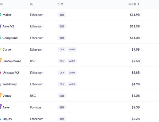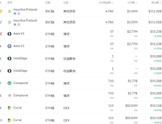 DeFi项目锁定资产前十排名及锁仓量,数据来源:Debank