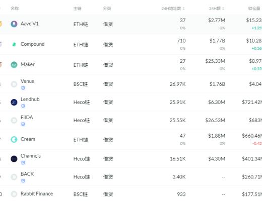锁仓量排名前十的借贷平台 排名来源:DeFibox