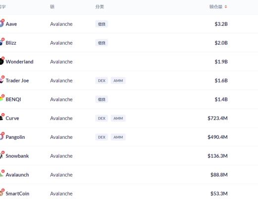 4.5Avalanche链上DeFi锁定资产:85.1亿美元