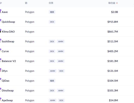 Polygon链上DeFi锁定资产前十排名及锁仓量,数据来源:Debank
