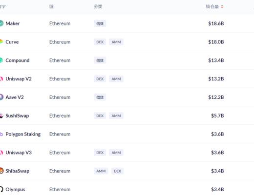 Ethereum链上DeFi锁定资产前十排名及锁仓量,数据来源:Debank